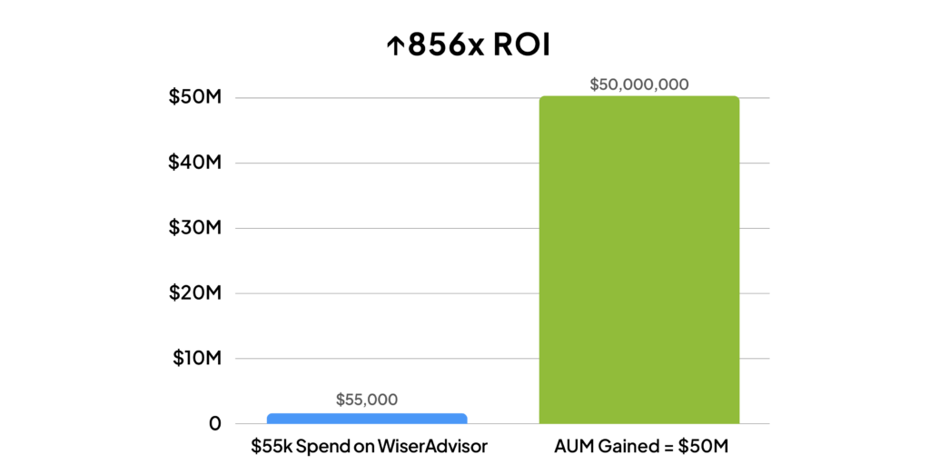 - High ROI: For every $1 invested in WiserAdvisor, this advisor gained ~$850 in AUM.