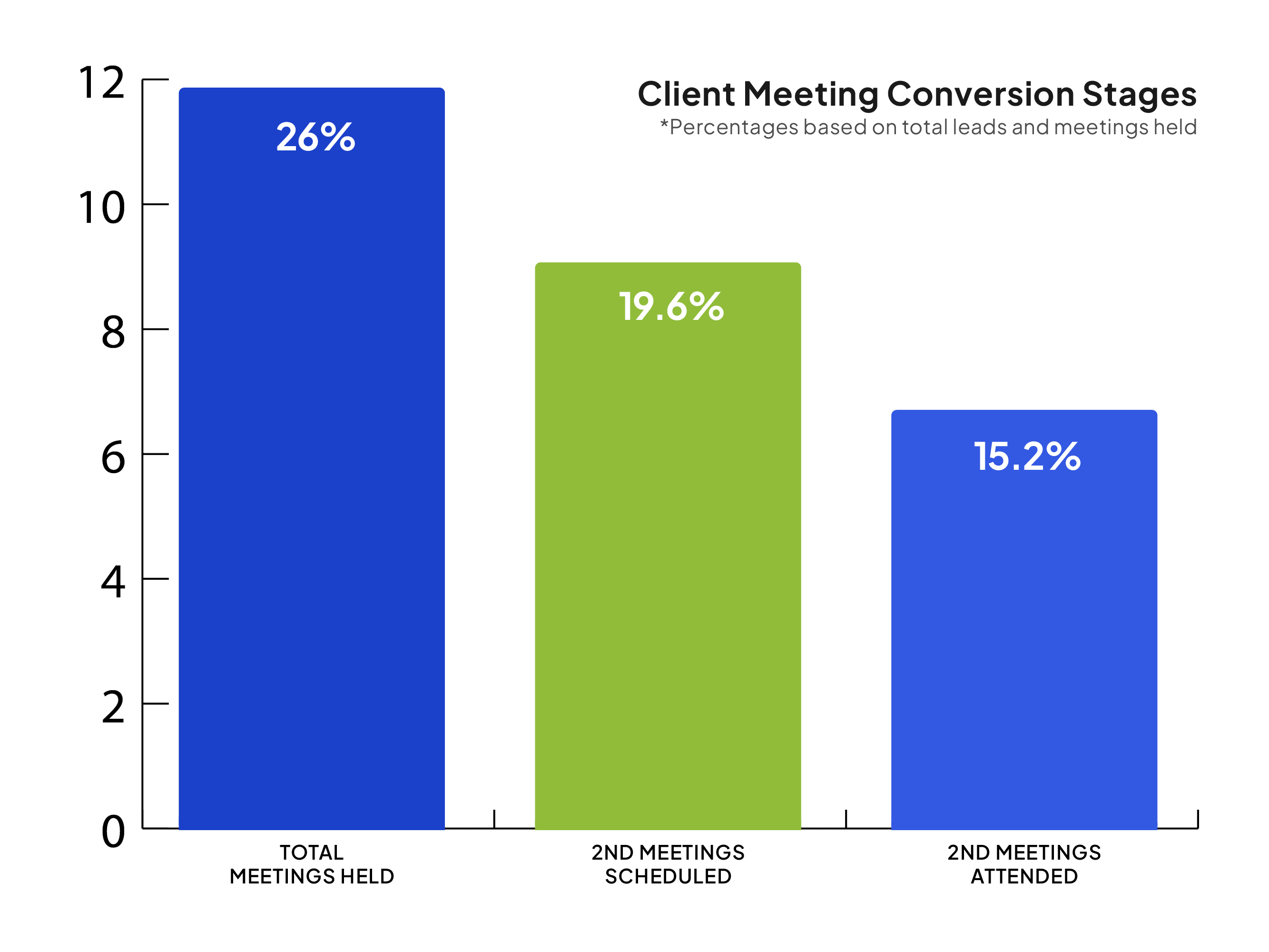 - 75% Conversion from First to Second Meetings