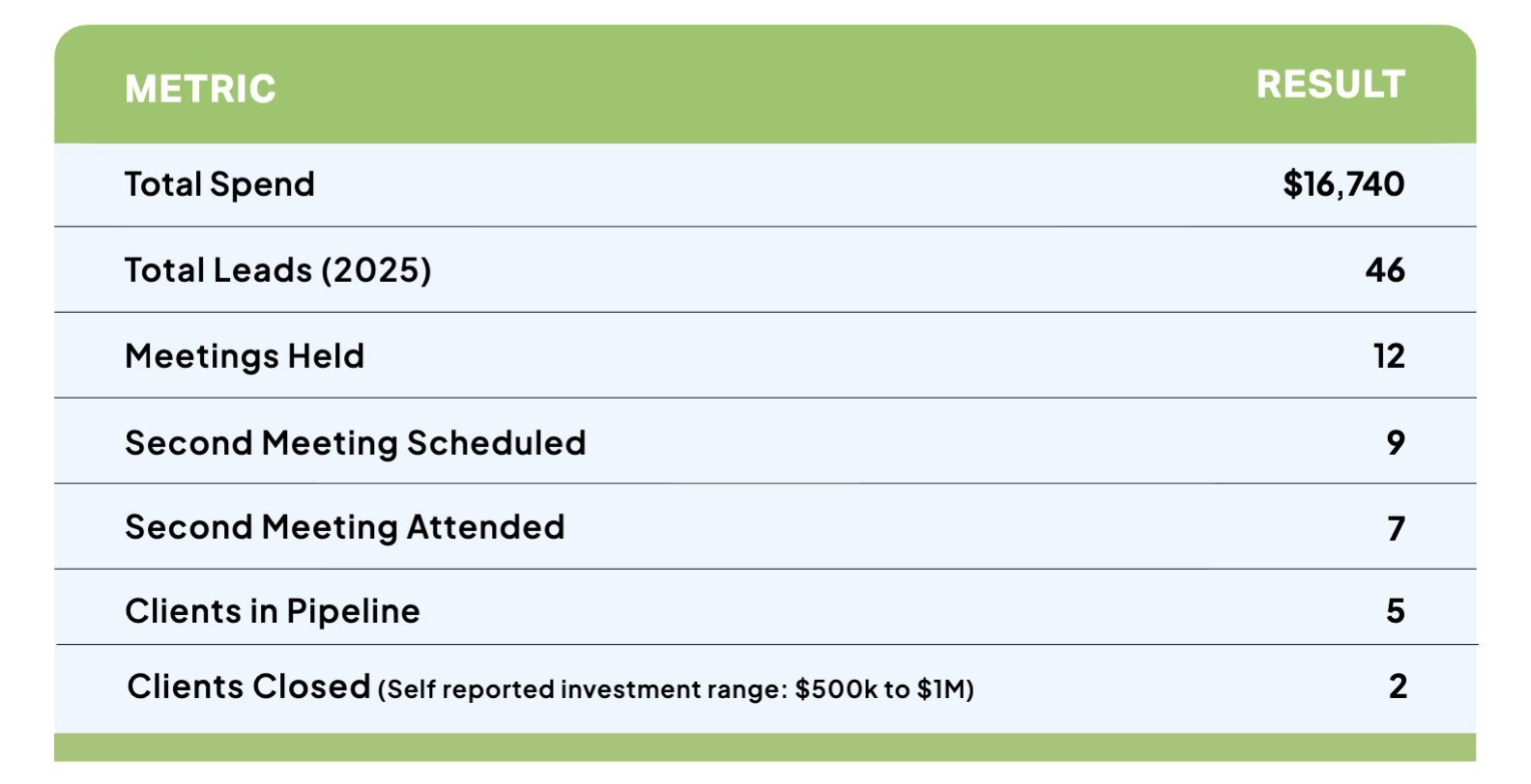 Fiat Wealth wanted to increase meaningful engagements with investors who fit their $500K+ profile. The firm had tested multiple marketing channels but found that many failed to generate consistent or qualified meetings.